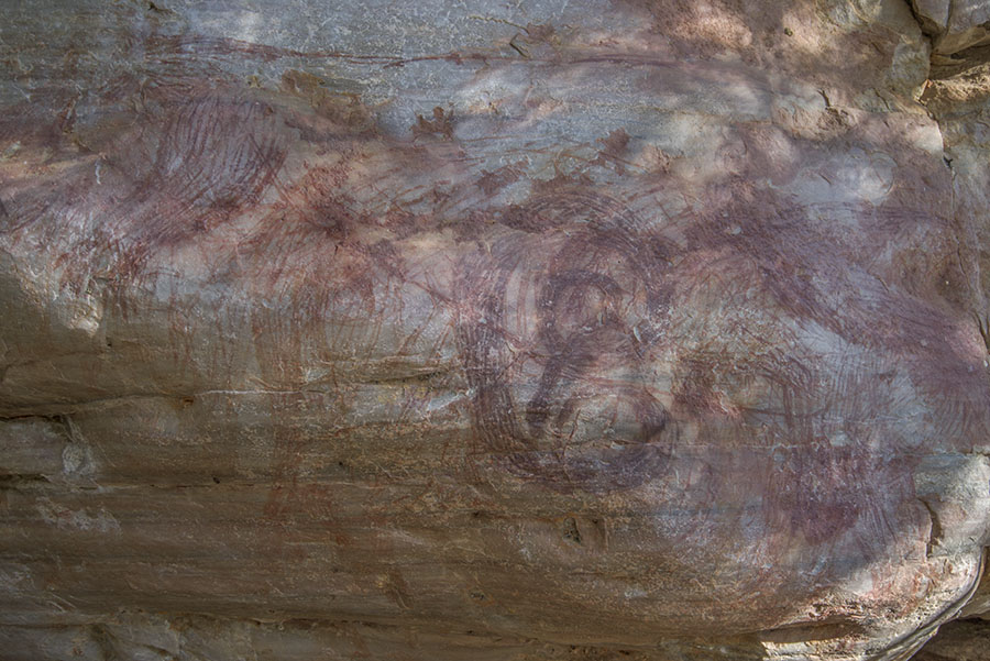 サファリの東南東に広がる岩場にある絵。ブラッシュ・ストロークで描かれた動物など。判然としない。