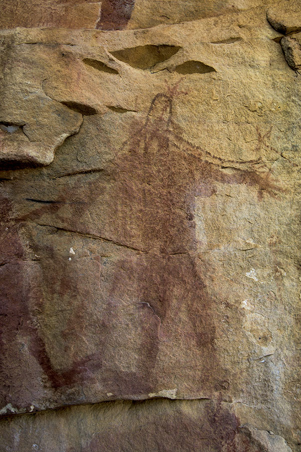 ブレイディー・クリークの低い場所にある岩絵スポットのひとつ「クロコダイル・ギャラリー」。 前頁の壁面の右端のディテール。