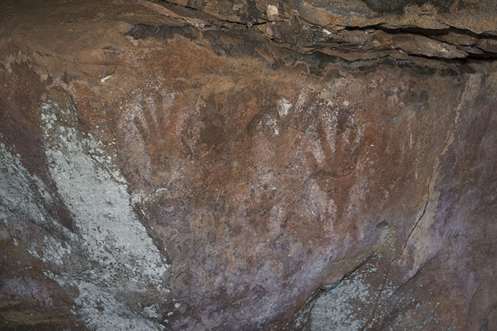 Hand Stencils. Rock Art at Little Mertens Falls Kimberley, Western Australia AUSTRALIA 2014