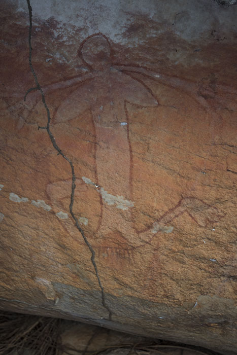 岩の下の低い壁面に描かれた女性像。出産のイメージだろうか。