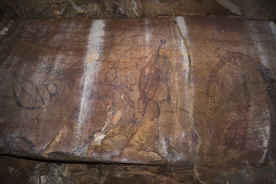 リトル・マーテンス・フォールの裏側にある岩絵。様々な動物が描かれている。