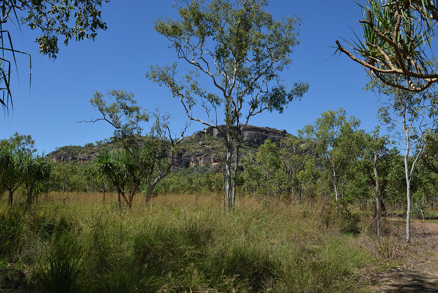 カカドゥ国立公園・ノーランジー・ロックを北側から見た様子。この北面にNanguluwurの岩絵サイトがある。