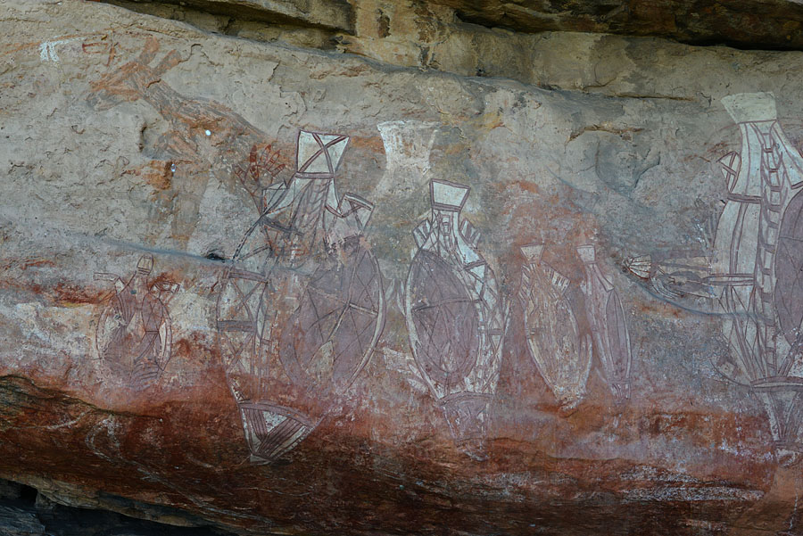 魚の絵が描かれた後、ここを訪れたヨーロッパ人がディーゼル燃料を染み込ませたぼろ布をカメの絵の右上の岩の隙間に入れ、火をつけて絵を消そうとしたらしい。