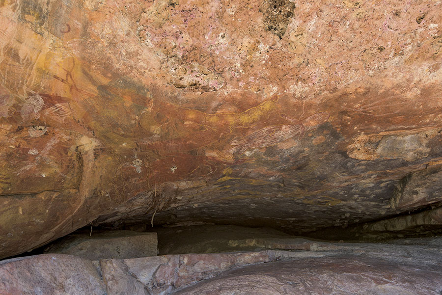 キャサリン川を渓谷の景勝地から約50キロ遡上した場所にある岩絵サイト。小規模な低いシェルター。
