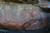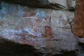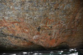 カカドゥの東南エリアからアーネムランド西部に広がる巨大な岩盤アーネムランド台地は1億6千年前に出来た砂岩を主にする厚い堆積岩の層だ。 |