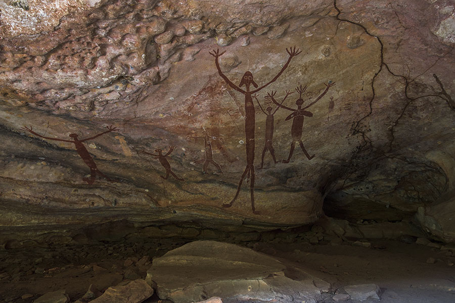 クィンカン・ギャラリーのメインパネル奥にある深いシェルターに描かれたクィンカン、ティマラ像。ティマラはこのエリアの精霊で、最もパワフルな存在とみられている。