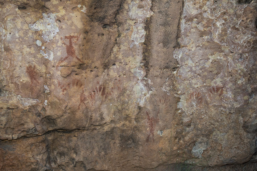 サンディー・クリーク。イニシエーションの場の入り口付近に描かれた絵と手型。