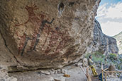 クエバ・デ・ラス・フレッチャス(矢の洞窟)は比較的小さなサイトだが、身長4-5メートルにもおよぶ見事な人物像が描かれ、 |