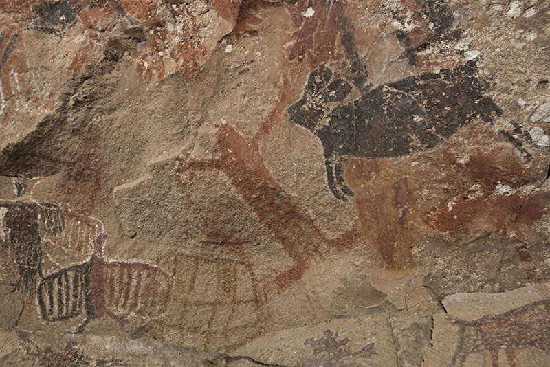 クエバ・ピンタダ。動物や鳥の輪郭やタッチが少し丸みがあり、大きな絵と異なる時代に描かれたものかもしれない。