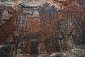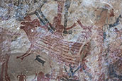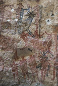 シエラ・デ・サンフランシスコ最大規模の見事な岩絵サイトがクエバ・ピンタダ(絵の洞窟)だ。。 |