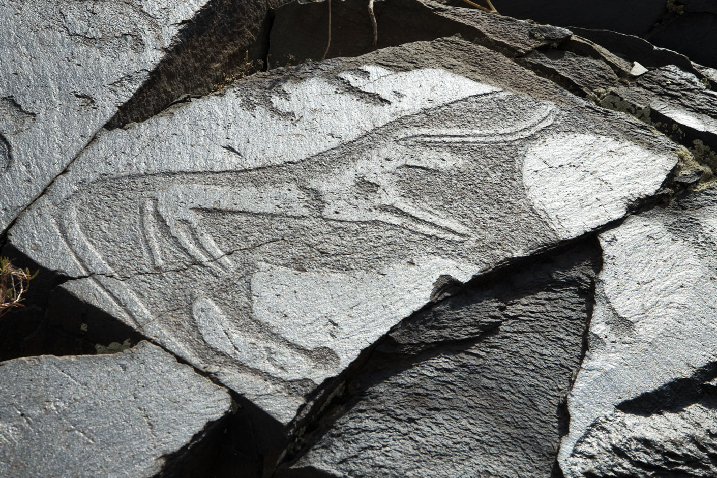 タンバリ。グループ IIIの壁画。大きな牛の中に小さな牛が入っている。おそらく妊娠した牛の絵だと考えられている。