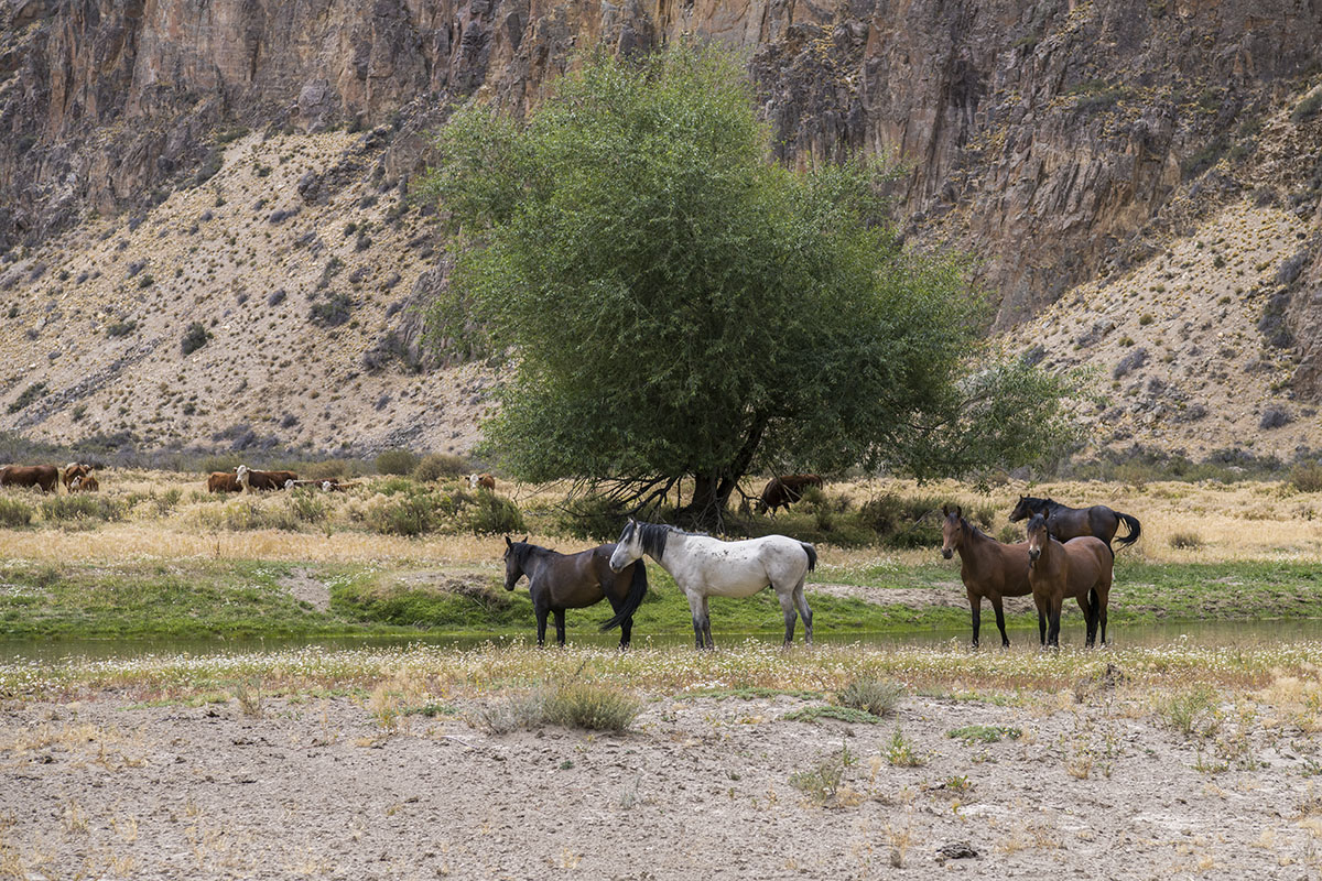 ピントゥラス川。野生化した馬。