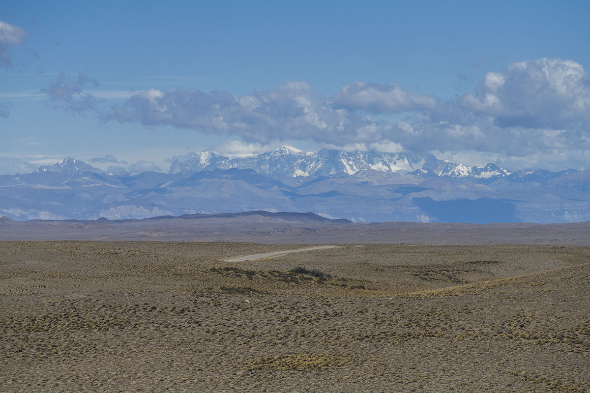 広大なステップの向こう側にアンデス山脈を望む。