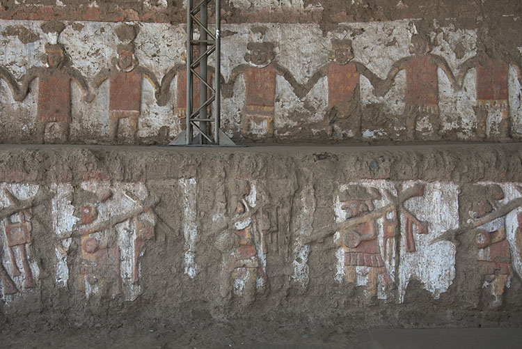 モチェ王国の「月の神殿」の壁面のレリーフ。戦士像など。