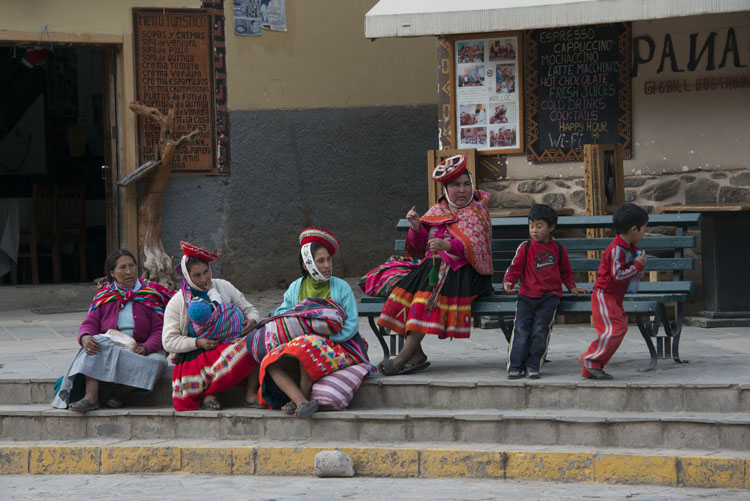 オリャンタイタンボ村の風景。民族衣装を着た女性たち