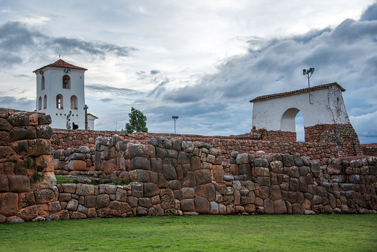 チンチェーロ村。インカの遺跡の上に造られた教会。基礎部分はインカの石組みがそのまま残っている。