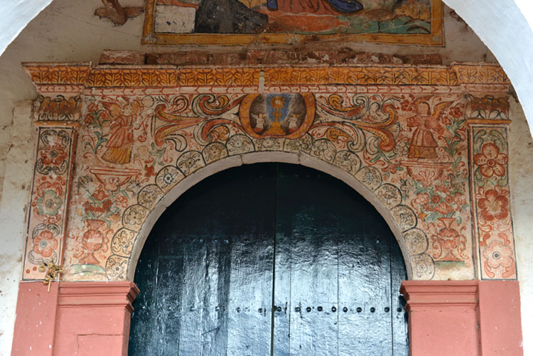 チンチェーロ村。インカ遺跡の上に造られた教会の壁画