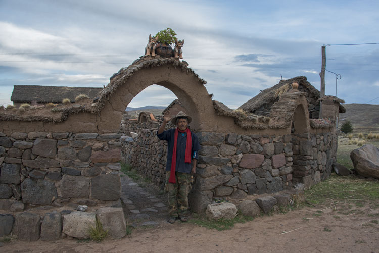 プーノからスユスタニへの道沿いにある家。丸い塀で囲まれ、入り口にアーチのある家が多い。