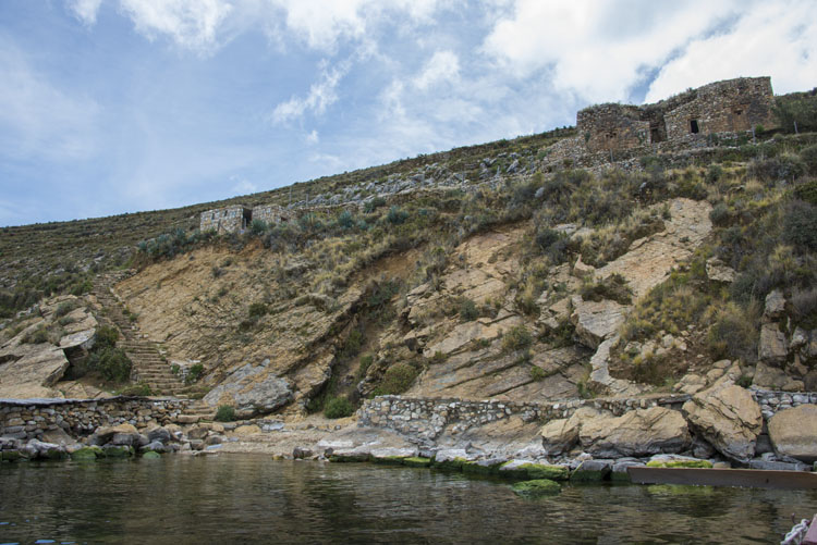 太陽の島の南端に残るインカ時代の遺跡のひとつピルコ・カイナ。 島には80以上の遺跡が残り、インカ時代のものが多いが、紀元前2200年頃から人が住んでいたことがわかっている。