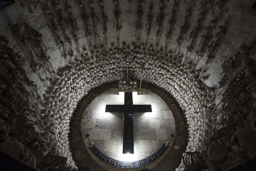 エンリケ・トレス・ベロンの納骨堂。教会の地下にあった納骨堂から遺骨を運び出して陳列された。
