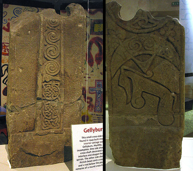 Gellyburnの民家で保存されていた石碑で、クラスIIの石碑の下部のみ残っている。ピクトのシンボルは三日月にV字棒、「ゾウ」。