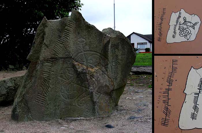 AbberdeenshireのInverurieの少し北の町の公園の敷地内に設置されている。破片を継ぎ合わせたもので、元の石碑の一部分のみ残っており、さらに欠けている部分がセメントで補修されている。三日月にV字棒、ヘビにZ棒というシンボルが見え、 その左にはオガム文字が彫られている。案内盤にはそれがIRATADDOARENSと読めると書いてあるが、意味は不明。