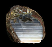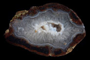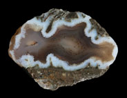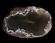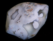 加賀のメノウ、オパール 石川県・富山県にも多く瑪瑙が採れる場所がある。石川県小松市には様々な鉱物産地があるが、メノウに関していえば、菩提、那谷、赤瀬の山合いで採れる。菩提の瑪瑙は大きな団塊で、風化によって外皮が白く石灰化しているものが多い。中までチョーク状になっているものもあれば、中は暗灰色の瑪瑙で外側だけが白くなっているものもある。風化している部分と内部との境界部分では、縞模様がくっきりと出ていることもあるが、風化していない部分では縞模様もはっきりしない暗灰色をしていることが多い。同心円状の模様を含むものもある。また、黄土色のモスアゲートもある。那谷町・赤瀬町ではサンダーエッグが採れる。赤瀬はオパールを含んだサンダーエッグが採れることで知られ、稀にノーブル・オパールも採れる。サンダーエッグは瑪瑙とオパールが水平層状の縞模様を作っているもの、白、緑色のモスを含んだものがある。石川県と富山県をまたぐ医王山系では、メノウを産するところが多いが、金沢市の浅野川では山から流れてくるメノウ、特にサンダーエッグが採れる。暗灰色、茶褐色で、かなり大きなものもある。また、医王山系ではかつてはモス・アゲートもよく採れたらしい。 These agates are from my personal collection.