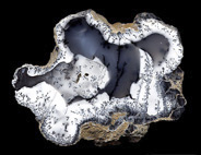 トルコはメノウ、ジャスパー、オパールが豊富な国で、アナトリア高原、アンカラ近郊に多数の産地があるようだ。薄青色のカルセドニー、カーネリアンなど、模様に乏しいものは大量に採れるようだが、メノウは、アンカラ近郊のChubuk産のものがユニークな形状で知られる。サンダーエッグタイプのものと、大きな脈状のものとあるが、いずれもpsudomorphs=仮晶を含むものが多い。色味に乏しい、暗い色のものが多いが、まれに赤、黄色の鮮やかな色彩のものがある。 These agates are from my personal collection.