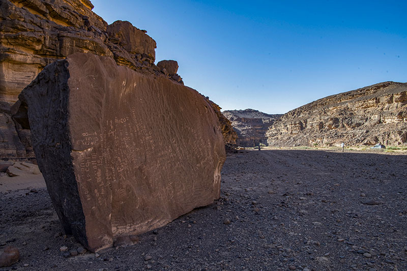 Oued Tin Udedにあるティフィナグ文字(トゥアレグの文字)と絵を刻んだ岩。