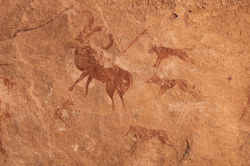 Akaham Ouan Elberedの後期牧畜時代の絵。バーバリー・シープと猟犬。