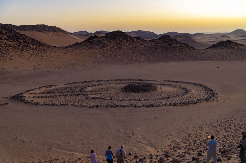タッシリ・ナジェールへの旅の起点になる街、Djanetの町南方にある「鍵穴型」と呼ばれる墳墓。約5000年前のものとされている。 このタイプの墳墓がタッシリ・ナジェール周辺に数多く残っているが、分布の状況から、イヘーレン様式と呼ばれる壁画を残した 白人系の牧畜民との関連が考えられている。