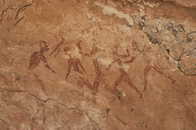 タッシリ・ナジェール、ティメンズージンの壁画。左の人物に向かって何か激高しているように見える人々。