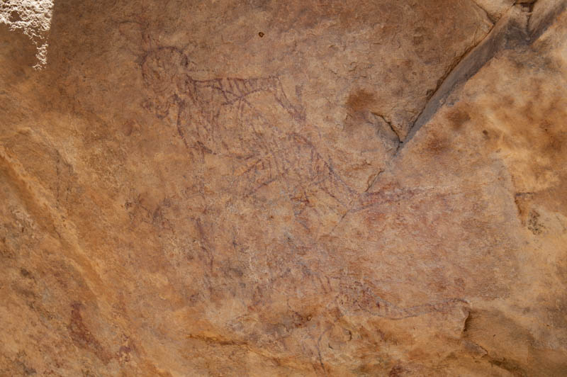 タッシリ・ナジェール、ティメンズージンの壁画。頭部に毛が逆立っている奇妙な人物画。