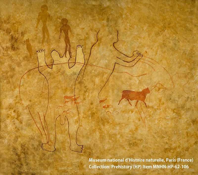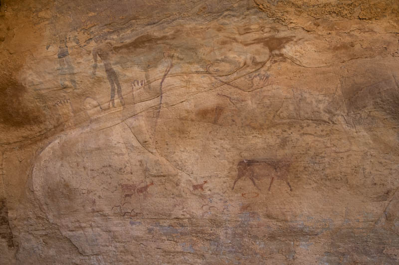 タッシリ・ナジェール、ティテラス・ネリアスの壁画。大きな白い絵はRound Head期のもの。