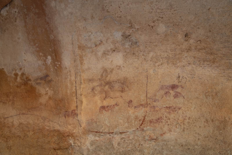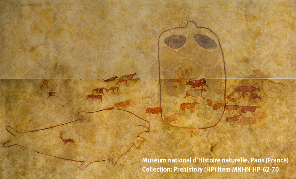 タッシリ・ナジェール、イン・イティネンの壁画。中央の縦長のものは何なのかわからない。