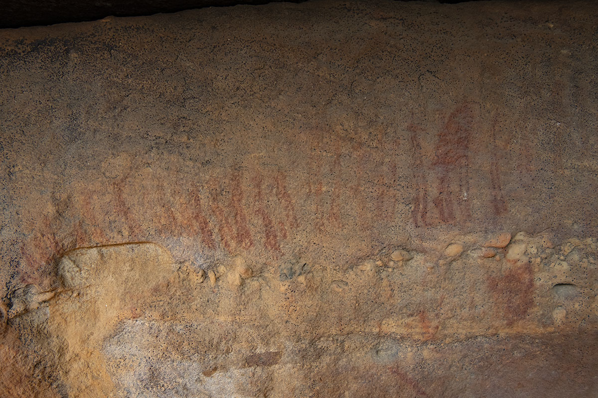 セヴィラ・ロックアート・トレイル、サイト7。細長い人物の行列。下は画像処理したもの。