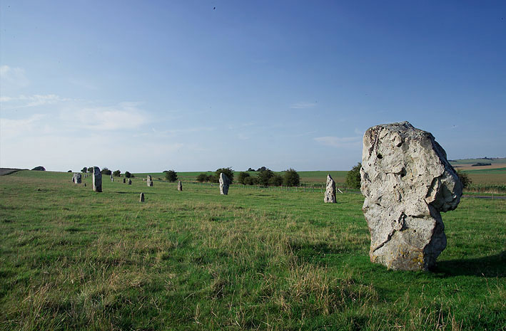サークルの南東に数キロにわたってのびている列石の道、ウエスト・ケネット・アヴェニュー。かつては100組もの岩が並んでいたと見られている。一対の岩同士の距離、つまり道幅は約15m、ひとつの岩のペアから次のペアへの距離は約24mで、エイヴベリーのサークルと南東の遺跡ザ・サンクチャリーを結ぶように延びている。Aveburyから反対側の南西にのびるBeckhampton Avenueには残っている岩はほとんどないが、近年発掘が行われ、埋まっていた岩が複数発見されたが、再び埋めもどされた。