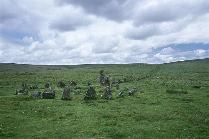 ダートムア西南の自然保護区Burrator Reservoirからさらに3キロほど東のムアに残っている。アクセスの難しい場所のひとつだ。ストーンサークルというより、正確にはリング状のケルンから石の列が延びている。オタマジャクシのような形だ。