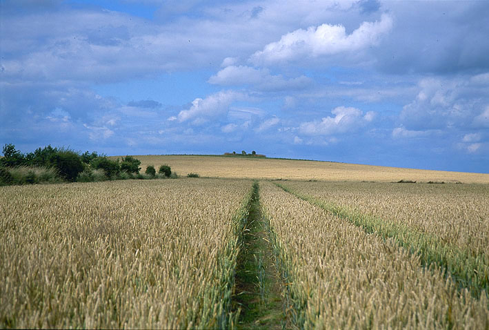イングランド北西の端で、スコットランドと国境を接するノーサンブリアには、Cup and Ring Markを彫った石は沢山残っているが、ストーンサークルには大きなものはない。これはこの地方を代表するサークルだ。Duddo農場の麦畑のど真ん中にあり、このような畑の中の轍を歩いて行くことになる。