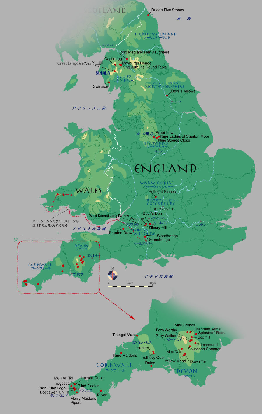 赤い丸印が本サイトに掲載されている遺跡です。遺跡名をクリックすると該当ページが開きます。 この地図はおおよその場所を示したものです。詳しい地図はリンクページに記載のあるModern Antiqualian などの専門サイトを参照してください。