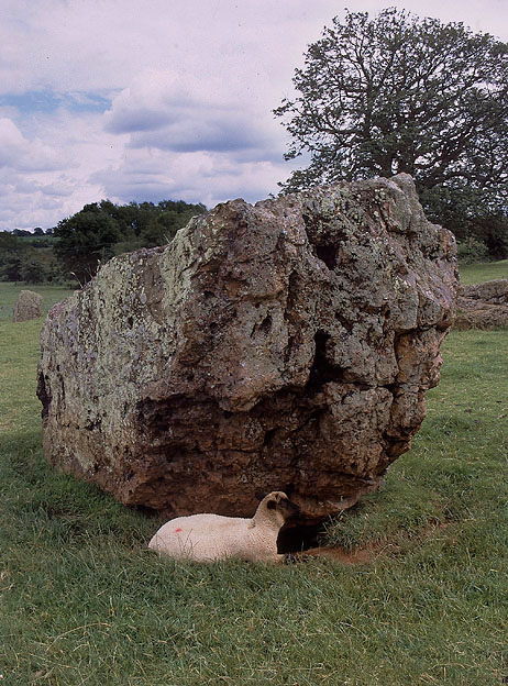 非常に規模の大きなストーンサークル。Aveburyに次いでイギリスで二番目に大きな直径112メートルにも及ぶ巨大なサークルを中心に、北東に約30メートルの、南西に約44メートルの3つのサークルからなる。北東のサークルは石の列でつくられたアヴェニューを持ち、かつて8つの岩でできていたと見られている。現在はその半数が残るが、かなり大きな岩が使われている。中央の巨大なサークルに使われている岩は少し小ぶりなものが多い。北東のサークルの中心と中央のサークルの中心を結ぶ線を南西にのばした延長線上にはcoveと呼ばれる、コの字型の石組みがあり、また、中央のサークルと南西のサークルを結ぶ線を北に延長すると約500メートル以上はなれたところにスタンディング・ストーンがある。 |