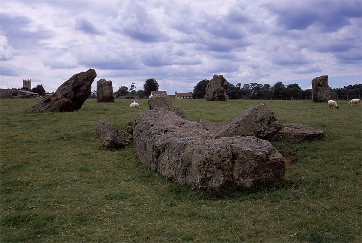 写真は北東の小さなサークル。手前の岩はサークルに続く通路の一部。この遺跡には、結婚の披露宴に集まっていた人たちが石になったという有名な伝説がある。こんな話だ。土曜に開かれた披露宴は夜中まで続いた。深夜12時になって、安息日に演奏はできないと楽士が帰ってしまった後も、「地獄に堕ちてもかまわないから、もっと踊りたい」という花嫁の前に見慣れぬ年老いたフィドル弾きが現れる。「私が弾きましょう」と、演奏を始めるが、曲のテンポがどんどん速くなっていき、それに合わせて皆のダンスのステップも速くなっていく。魔法にかかったように、足が音楽に合わせて勝手に動き、止まらない。フィドルに合わせて夜通し踊り、夜があけたと同時に、皆、石に変わってしまったという。フィドル弾きは悪魔だったということだ。安息日破りの禁をおかしたために石になったという伝説は各地に残っているが、この遺跡の話は最も有名で、歌までつくられている。 |