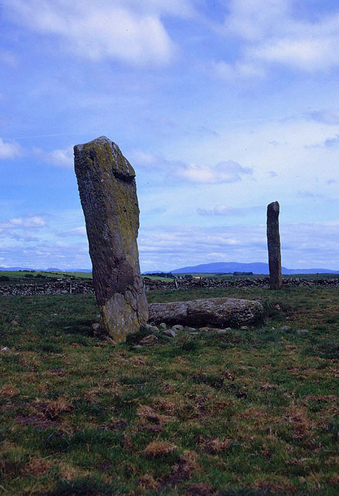 Cup and Ring マークの岩は農場の南側だが、少し離れたところに3つのスタンディングストーンがある。一つは倒れている。