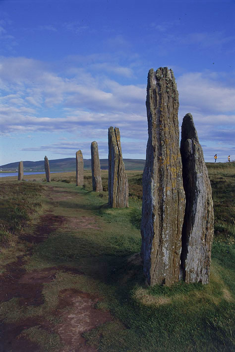 スコットランド本土最北端のダネット・ヘッドから北に10キロ弱、大西洋と北海の出会う冷たい海に浮かぶオークニー諸島は5000年前の「巨石の都」だった。特に最大の島メインランドには巨石時代の遺跡が多数残っている。最も大規模な遺跡は、ストーンサークルのリング・オ・ブロガーで、イギリスではAvebury、Stanton