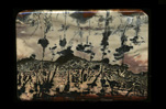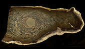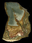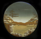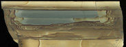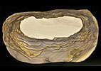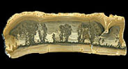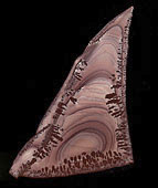 marble)」と呼ばれている。これらの石の模様を神話や旧約聖書の物語の場面に見立てて、石の模様の上に人物画を描き加えて一枚の絵画とした作品なども多々残されている。イギリスのCothamで産する原始的な藻類の化石もポプラ並木のような景色を作り出すことで有名だ。Stromatoliteの化石は世界各地で採れるがこうした模様のものは他にない。アメリカのオレゴン州産のジャスパーには風景石として知られるものがいくつかあり、特にビッグス・ジャスパーの模様は山々が連なる独特な景観を生み、樹状にのびた金属のインクルージョンがさながら谷に生えた木々のように見えるものがある。バランスの良い「風景画」としてトリミングされたものは高値で取引される。 |