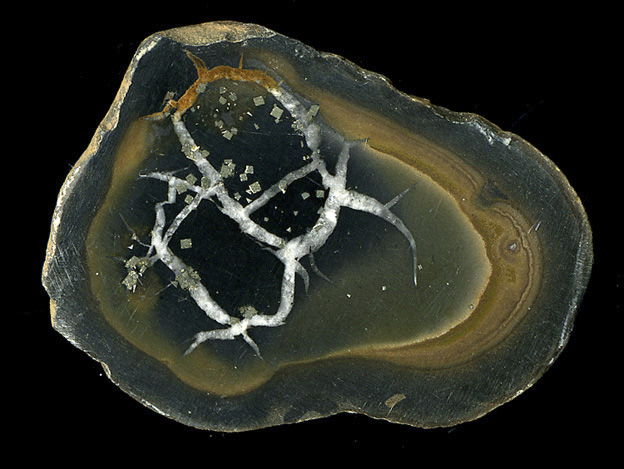 四角形の小さな粒は黄鉄鉱の結晶。