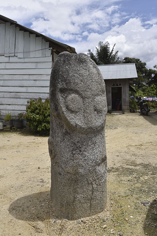 スラウェシ島、Central Sulawesi地方、Napu谷のWatu Tau村にある石像。人家の庭に立っている。 Watu Tauは「石の人」を意味する。