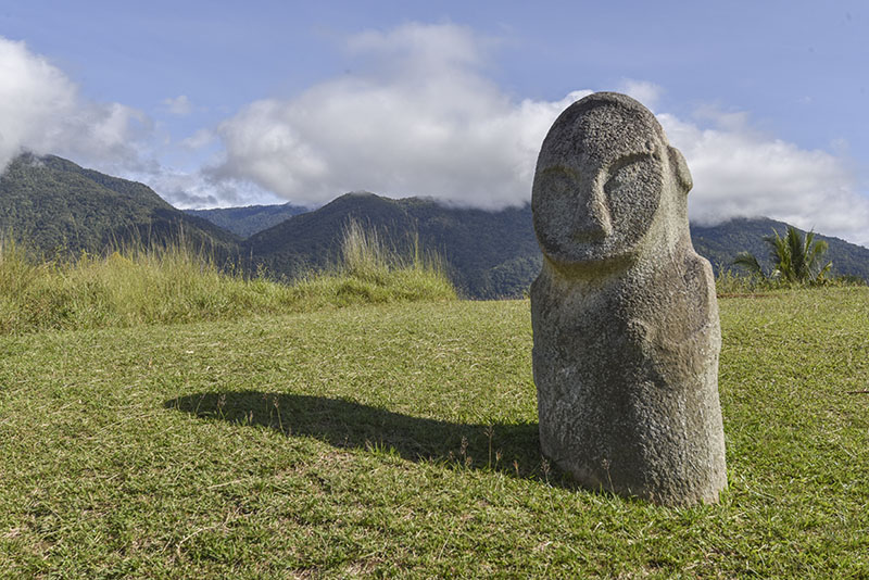 スラウェシ島、Central Sulawesi地方、 Bada谷のLogaの石像。丘の上から谷を見下ろしているような形で立つ高さ約120センチの像で、地元ではこれも女性像とされている。