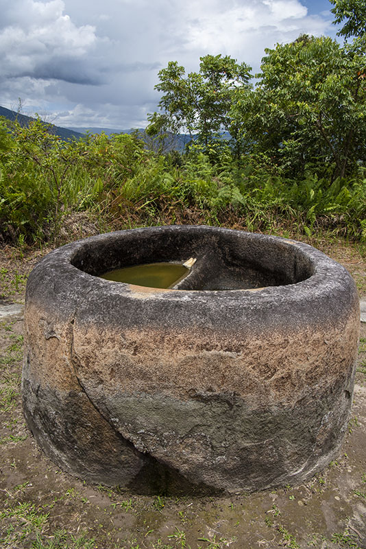 スラウェシ島、Central Sulawesi地方、 Bada谷、Kolori村の近くにある石の器Kalamba。中が2つにわかれている。