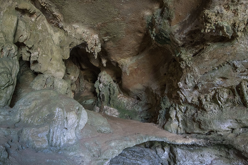 スラウェシ島、South Sulawesi地方、Bonto Lempangan村のBulu Sipong 1 洞窟。正面奥に絵がある。